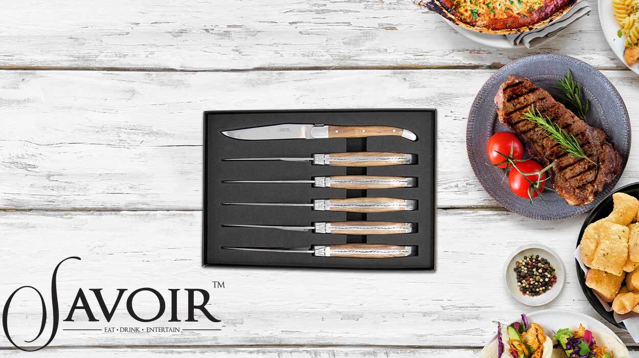 Savoir’s selection of steak knife sets is carefully crafted with premium materials, craftsmanship, and attention to detail. Savoir knives are designed to add a touch of class to any situation, and offer function and quality when the norm just isn’t enough.